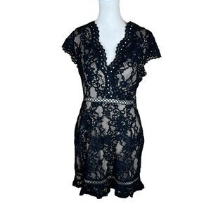 Lulu’s To The Moon & Back Black Lace Mini Dress Size S