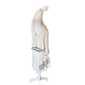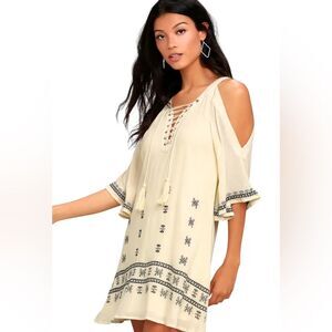 Lulus To the Sea Light Beige Embroidered Cold Shoulder Dress Womens Size Medium