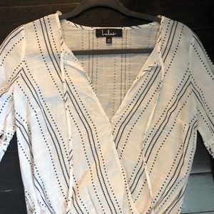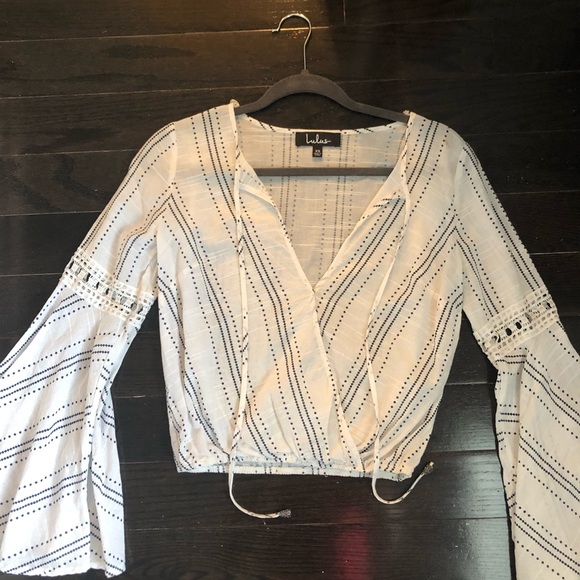 Cute top with bell sleeves. Top is light cream and design is navy. Worn once.