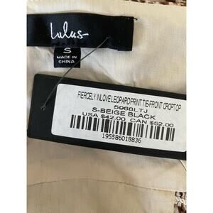 Lulus Top Women XS Brown Tie V-Neck Short Sleeve Animal Print Crop Smock NWT
