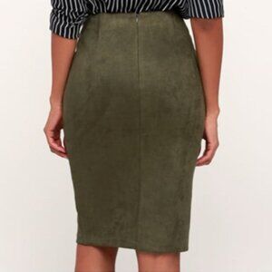 Lulus Total Allure Faux Suede Pencil Skirt Olive Green Size M