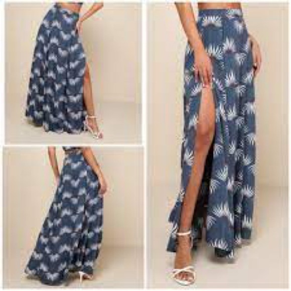 Gently used condition maxi skirt from Lulu’s in size medium. No flaws. Approximately about 39” length, 13.5” waist slit is 24in