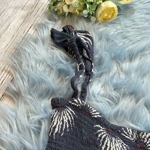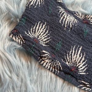 Lulus Trancoso Dusty Blue Floral Print Smocked Bandeau Top sz S