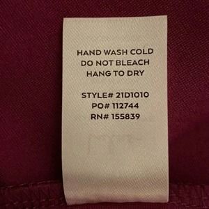 Hand Wash Cold. Do Not Bleach. Hang To Dry.