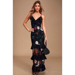 Lulus True to Heart Floral Embroidered Maxi Dress Black Tiered Ruffle Maxi Small