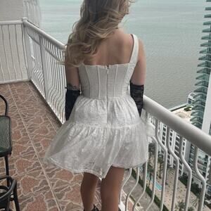 Lulus Truly Flawless White Lace Sleeveless Bow Bustier Mini Dress
