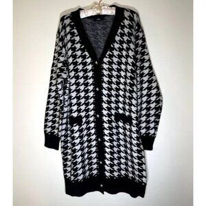 Lulus Truly Iconic Black and White Houndstooth Cardigan Sweater Dress