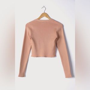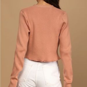 Lulus// Two Cute Peach Ribbed Knit Crop Top and Cardigan Sweater Set