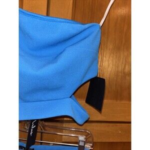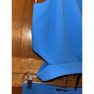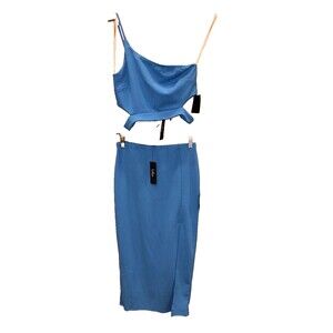 Lulus two piece set outfit blue one shoulder crop top with side slits adjust strap lined stretch NEW Pullon pencil skirt slit polyester spandex hand wash RN 148731 PO 182982 Style BS11527L