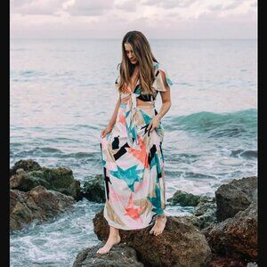 Lulus Two-Piece Maxi Dress / Skirt Set NWT XL Daydreaming White Print Blogger