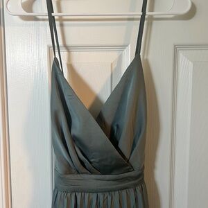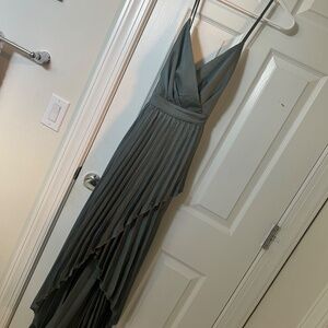Lulus Ultimate Charm Dark Sage Grey Satin Pleated High-low Maxi Dress - Size L