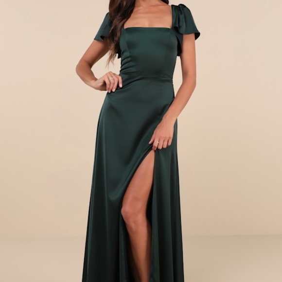 Lulus Ultimate Sweetness Emerald Green Satin Flutter Sleeve Maxi Dress - Size M