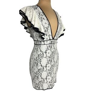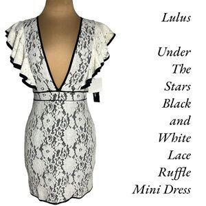 Lulus Under The Stars Black and White Lace Ruffle Mini Dress Size Small