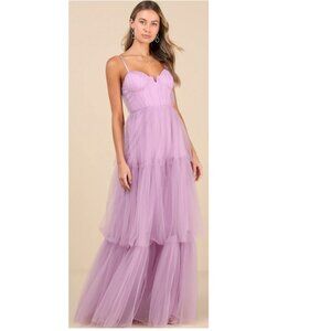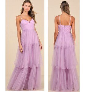Lulus Unforgettable Poise Lilac Tulle Bustier Tiered Maxi Dress Size Small New NWT Reg. Retail $100.00