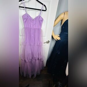 Lulus Unforgettable Poise Lilac Tulle Bustier Tiered Maxi Dress XS New NWT Reg. Retail $100.00