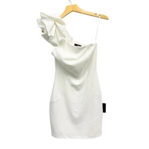 Lulus Unstoppable Stunner White Ruffled One Shoulder Mini Dress size XS NWT