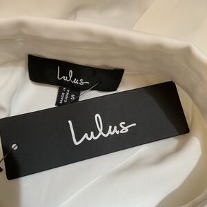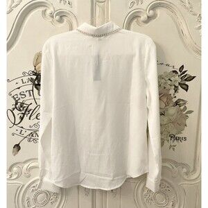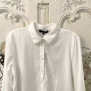 Lulu’s Upscale Composure Blouse Women's S White Pearl Trim Long Sleeve NWT