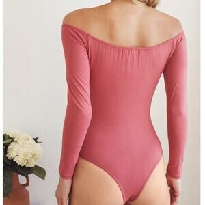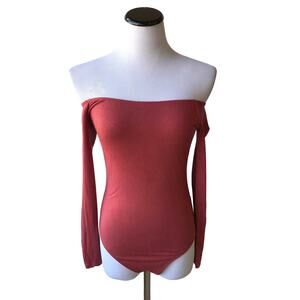 The Lulus Upstage Rusty Rose Off the Shoulder Bodysuit is your favorite top turned bodysuit! Soft jersey knit shapes this essential bodysuit that has an elasticized off-the-shoulder neckline, fitted long sleeves, and a figure-hugging bodice. Attached cheeky bottoms have two snap closures. This garment fits true to size. Great for any cup size. Fabric is very stretchy. Front of bodice is lined. Rayon / spandex. Hand wash. Made in the USA. TLR20477. In preowned condition.