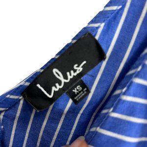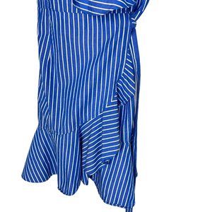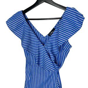 Lulus Valencia Blue White Stripe Flutter Wrap Short Sleeve Waist Tie Above Knee Dress XS