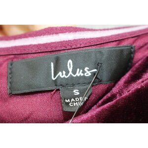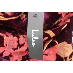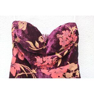 This is a beautiful Lulu's Strapless Burnout Velvet Maxi Dress that is a size Small. It has a long slit in the front on one side. It has that feminine whimsigoth style. It is 65% Rayon and 35% Nylon. The lining is 100% Polyester. Laying flat, it measures: Armpit to armpit-14.5 and the length is 51". It is a very nice dress.