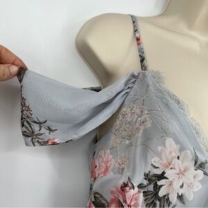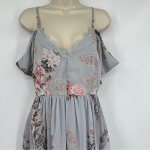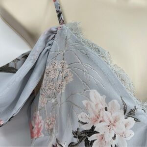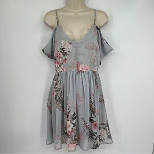 Lovely pieces like the Lulus Verona Light Blue Floral Print Off-the-Shoulder Lace Dress can't help but gravitate to you! Adjustable spaghetti straps support woven, off-the-shoulder sleeves, and a darted, triangle bodice with eyelash lace trim. Blush pink, grey, and ivory floral print dances throughout the skater silhouette.