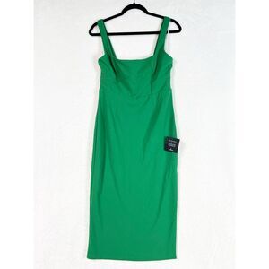 Lulus Vibrant Allure Green Square Neck Sleeveless Bodycon Midi Dress Size M NWT