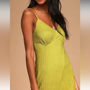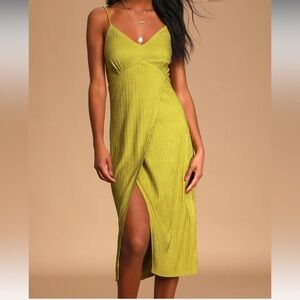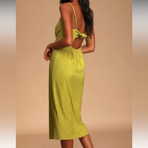 Lulu's View and I Chartreuse Tie-Back Faux-Wrap Midi Dress