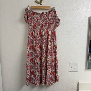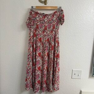 Lulu’s View from the Meadow Cream Floral Print Off-the-Shoulder Dress Size Large
