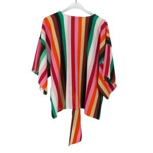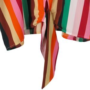 Lulu's Vine & Love Multicolor Rainbow Striped Front Tie Short Sleeve Top Small
