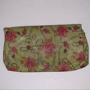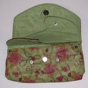 Super cute, vintage vibe, expanding wallet/clutch. No flaws.
