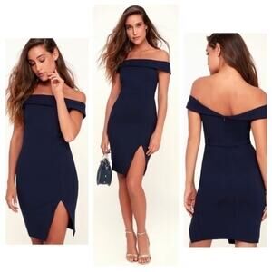 Lulu's Way Of Love Navy Blue Off-the-Shoulder Bodycon Mini Dress Size S
