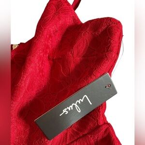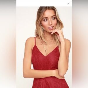 Lulus Way with Words Berry Red Floral Lace Skater Dress Full Skirt Fitted Waist Size Small