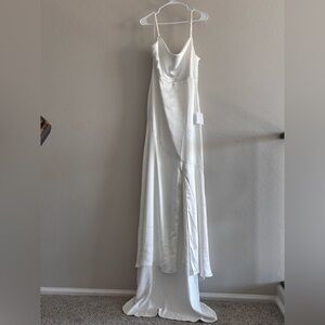 Lulus Wedding dress size XL Allure ivory satin Backless Cowl Neck.