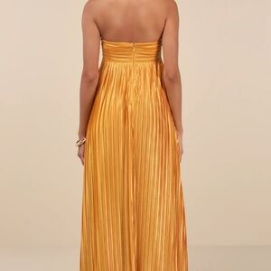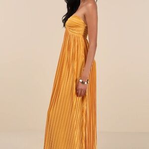 Lulus Whimsical Beauty Golden Yellow Satin Plisse Strapless Maxi Dress - Size M