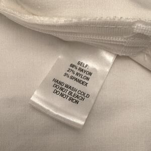 In excellent used condition. Zipper enclosure. Rayon, Nylon, Spandex blend. Size Small.