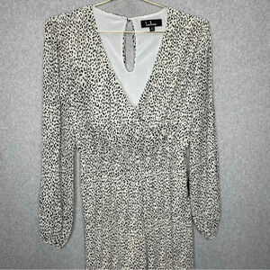Lulu’s White Black Speckled Plunge Neck Wide Leg Jumpsuit