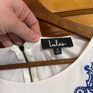Lulus White Blue Embroidered Boho Mini Dress Women’s Small