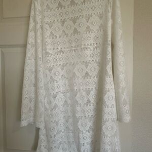 Lulus White Crochet Lace Button-Up Womens Swim Cover-Up