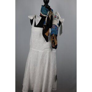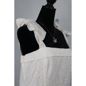 Lulus White Embroidered A-Line Dress With Tie Straps & Zipper Closure XL Cotton/