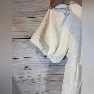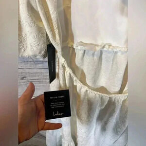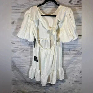 Lulus White Floral Puff Sleeve Backless Dress NWT