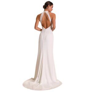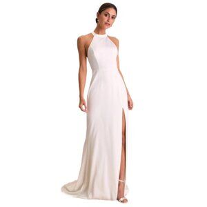 Lulus White Halter Style Wedding Dress with Lace Back NWT Size Medium