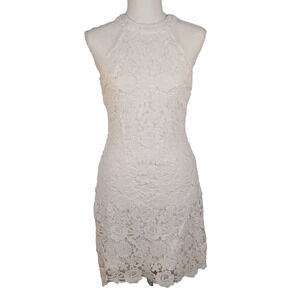 Lulus White Lace Halter Dress Women's Small Lined Crochet FLAW