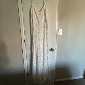 Lulu's White Lace Ruched Sleeveless Maxi Dress