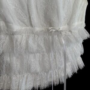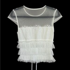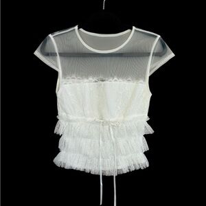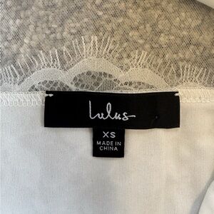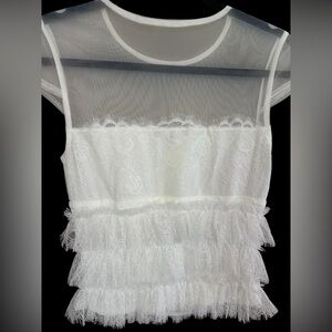 Lulu's White Lace Ruffle Blouse with Sheer Top