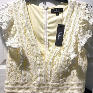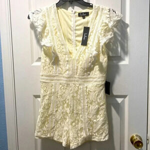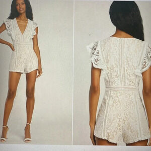 Lulus Exclusive! Everyone's crushing on the girl wearing the Lulus All the Attraction White Lace Ruffled Romper! White lace (with pierced ladder crochet accents throughout) sweeps across a nude liner to form a deep V-neckline and a sleeveless bodice with fluttery ruffles. Fitted waist tops attached mini shorts. Hidden back zipper/clasp.
