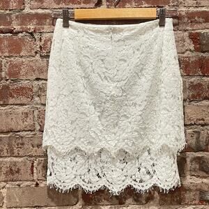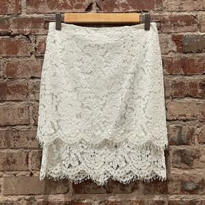Lulu’s White Lace Tiered Mini Skirt – High Waist Pencil Fit Size Small