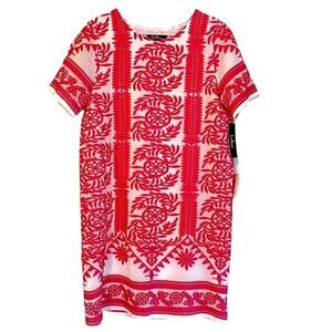 Lulu’s White Pink Embroidered Shirt Sleeve Shift Dress Size Small NWT
