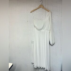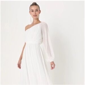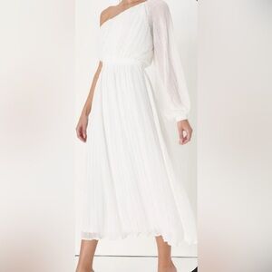 Lulu’s White Pleated Elegant One-Shoulder White Dress