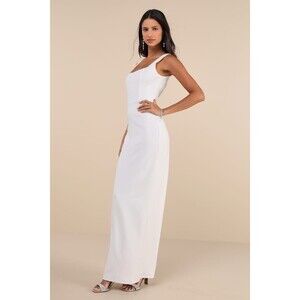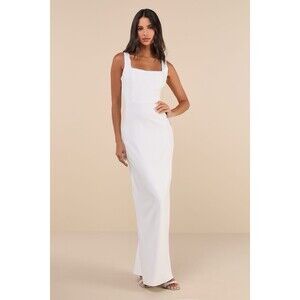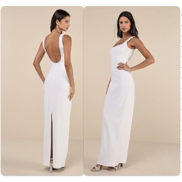 Lulus White Rhinestone Square Neck Backless Maxi Dress NWT Size L