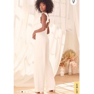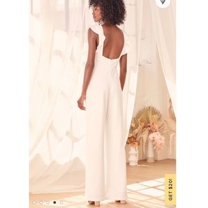 Lulus Feel Your Love White Ruffled Wide-Leg Jumpsuit. Wore once for my bridal shower and it was perfect!